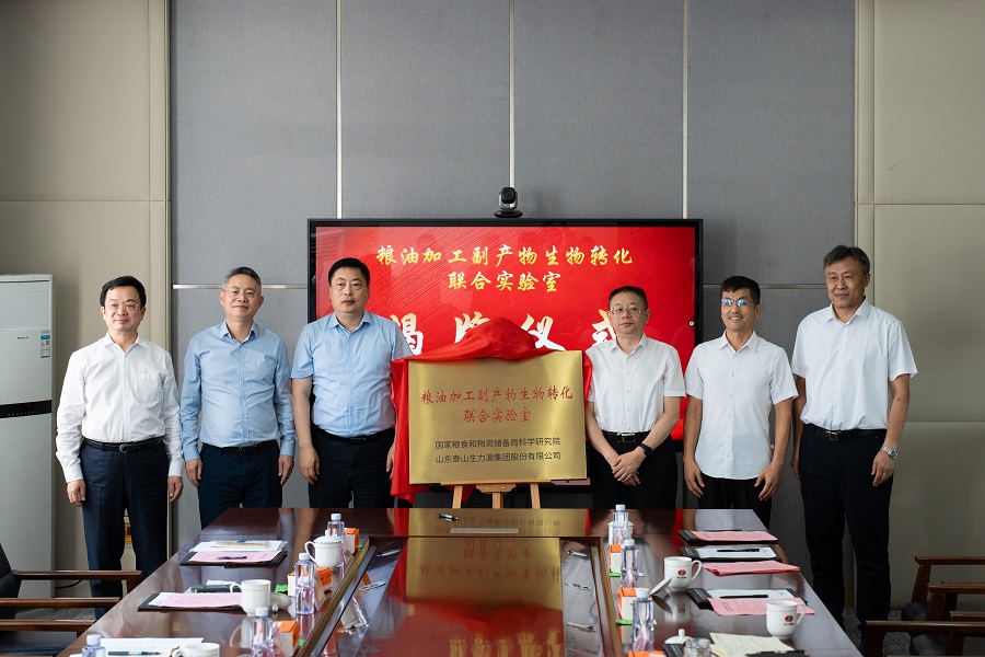 8月26日,國家糧食和物資儲備局科學(xué)研究院與山東泰山生力源集團(tuán)股份有限公司簽署糧油加工副產(chǎn)物生物轉(zhuǎn)化聯(lián)合實(shí)驗(yàn)室共建合作協(xié)議。國家局總工程師、院黨委書記滕增泰,泰安高新區(qū)黨工委書記、管委會(huì)主任宋鴻鵬,生力源公司總裁徐啟民出席簽約儀式,并共同為聯(lián)合實(shí)驗(yàn)室揭牌。科學(xué)研究院副院長邱平,生力源公司副總裁李軍訓(xùn)分別代表雙方單位簽約。院首席科學(xué)家李愛科參加簽約儀式。